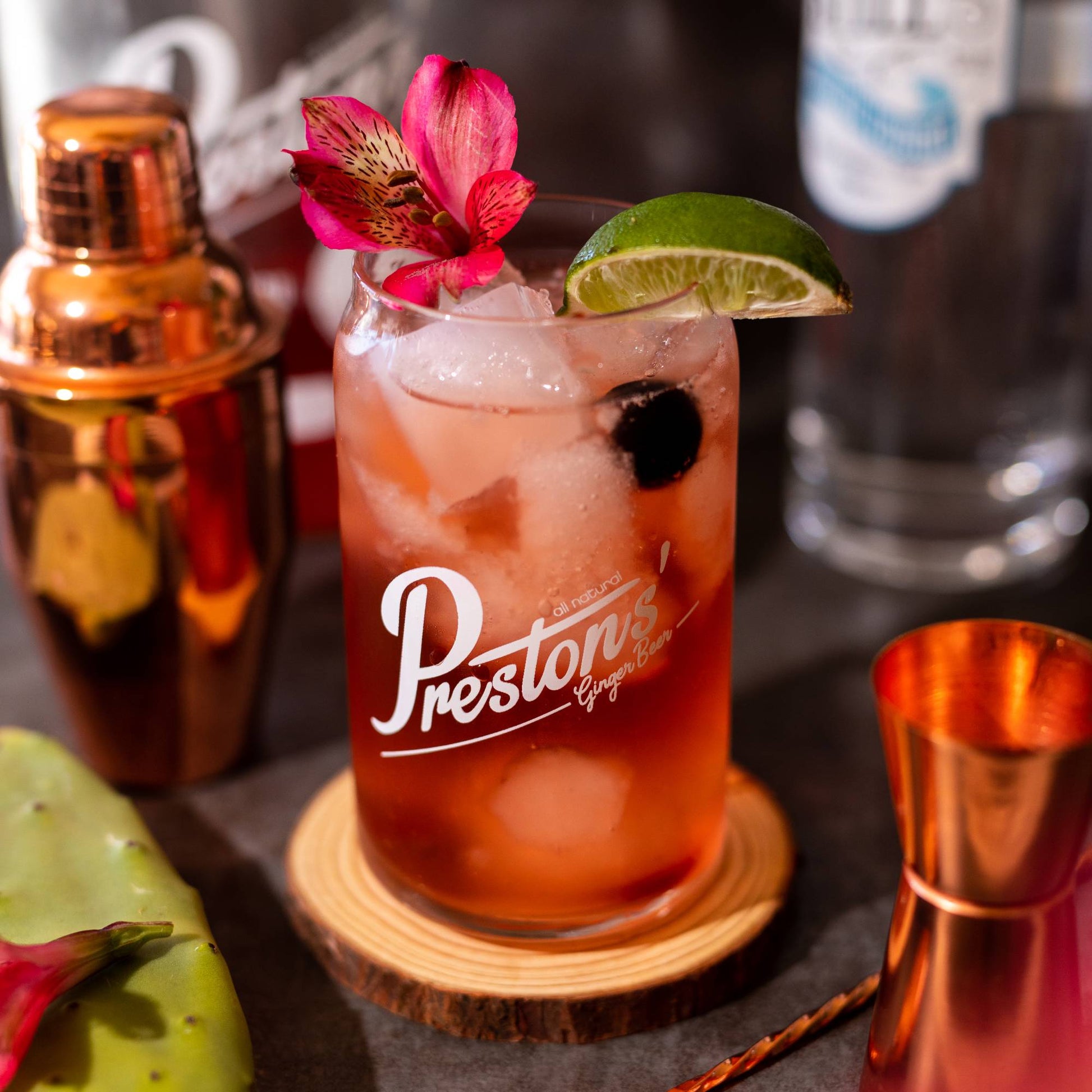 - Brewed with fresh ginger imported from Peru, prickly pear, and hibiscus.